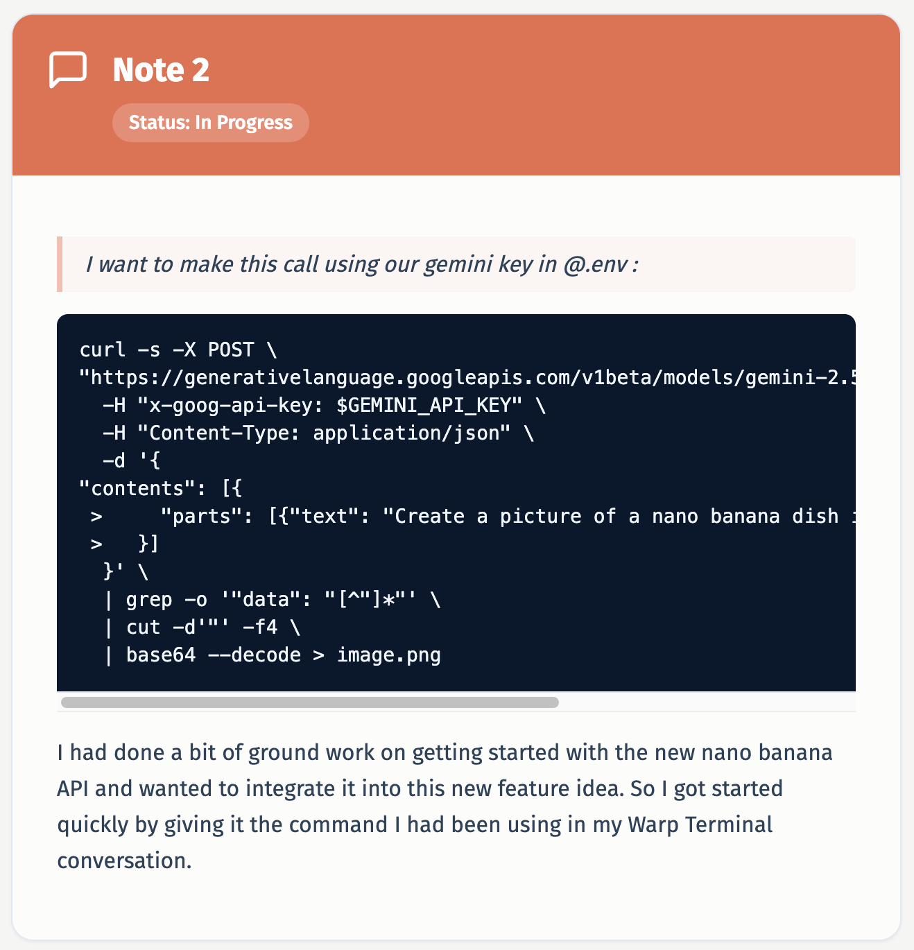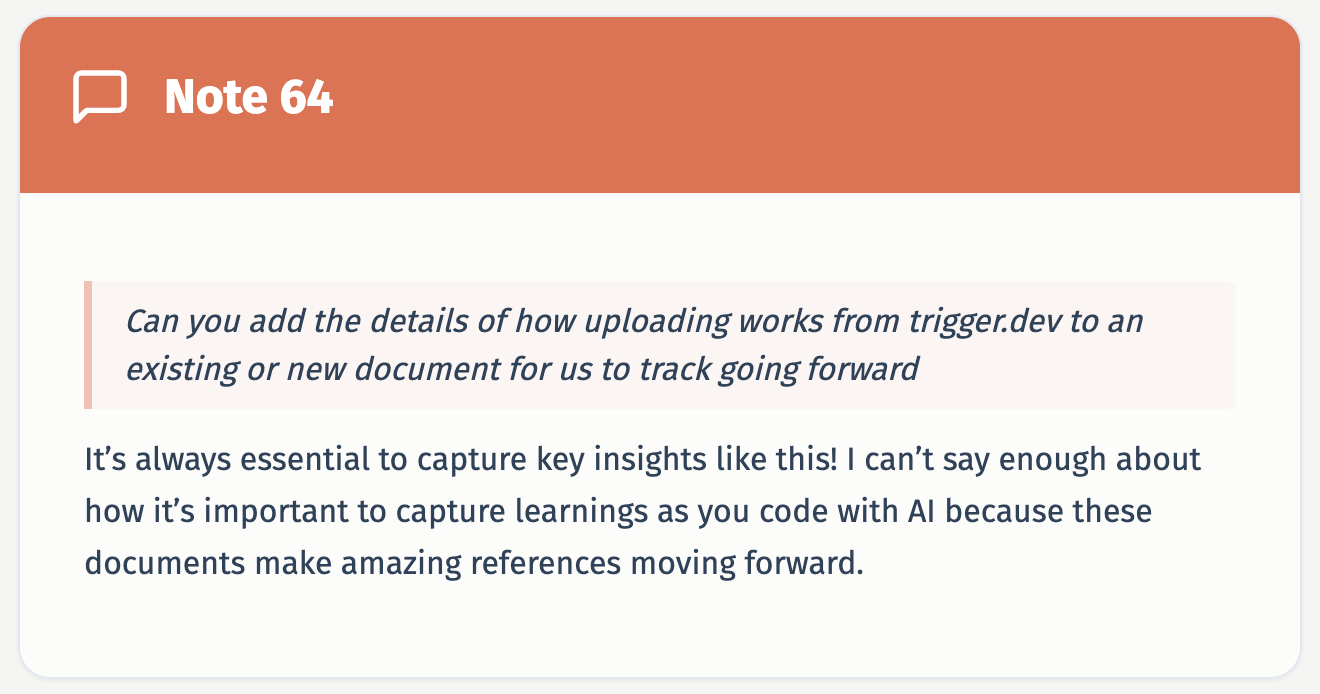 Here we’re catching Claude Code up to some of the research I did to begin the feature. You’ll see the comment there and a quick note with the details. This is everything I needed to give the AI to get the feature started.