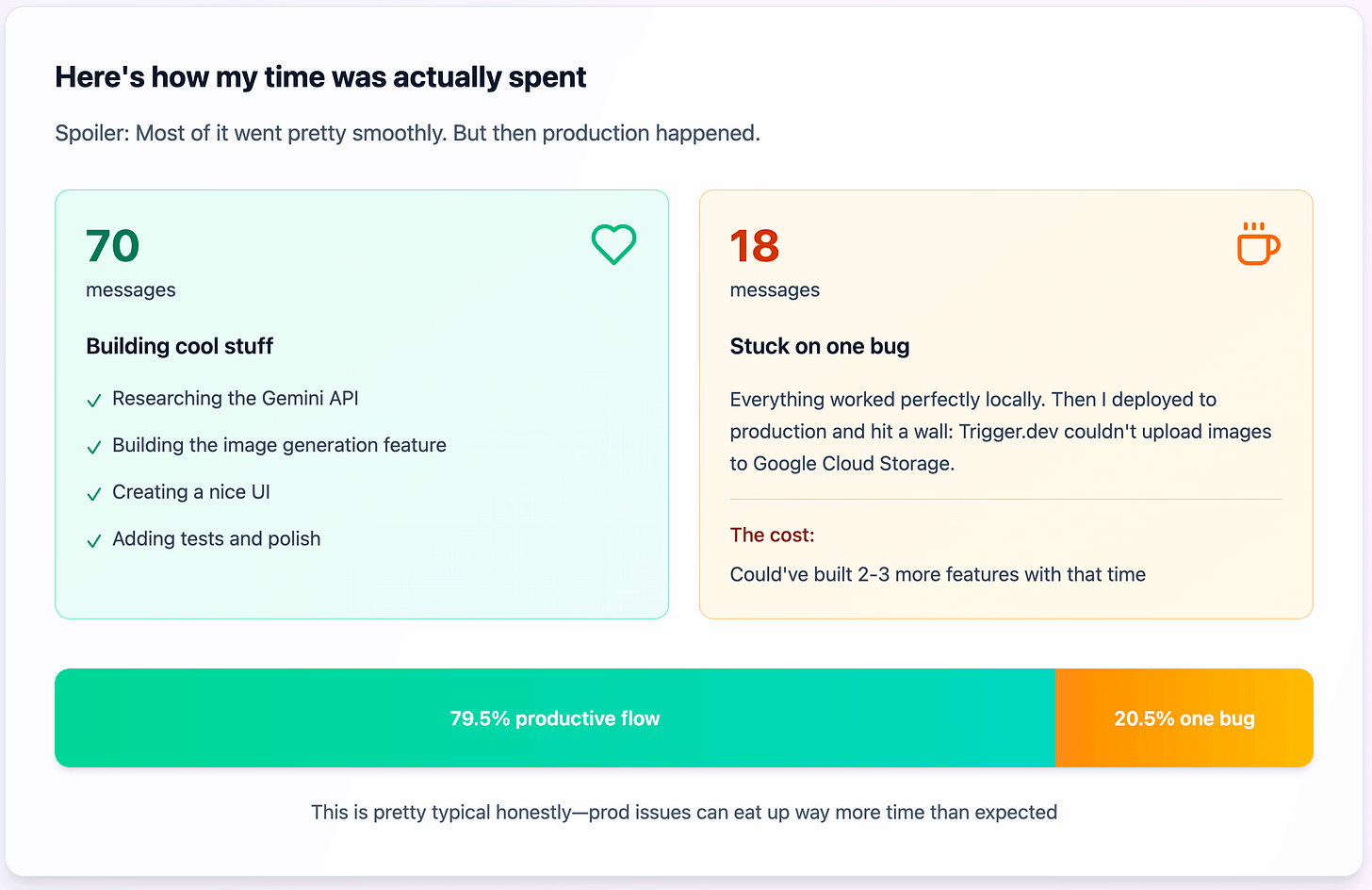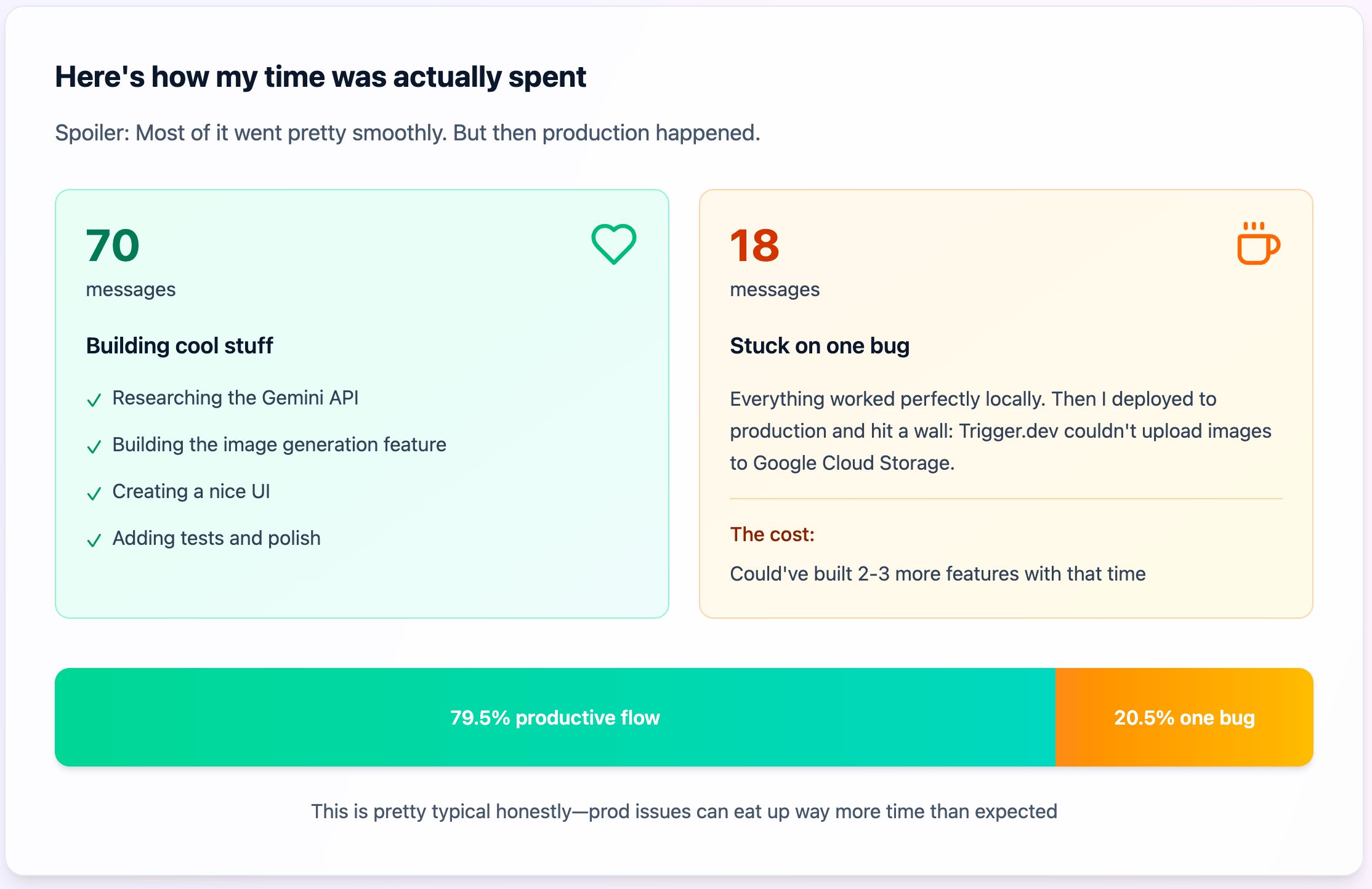 In my latest video, I share a high-level summary of building a full feature with Claude Code and AI-assisted coding — from rapid prototyping to a frustrating production bug that ate up 20% of my time. If you haven’t seen it yet, you can catch the overview here: